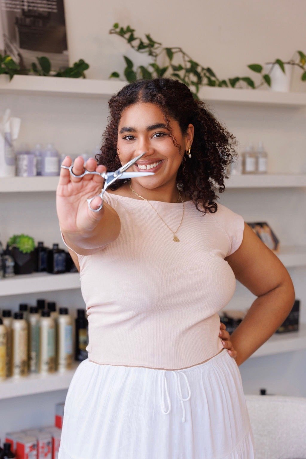 Born in South Africa and raised across three other countries, she brings a worldly perspective and a deep appreciation for connection into her chair. Her Honours degree in Psychology from the University of Toronto fuels her passion for mental health, shaping an empathic approach to hairstyling where conversations often mean just as much as the transformations